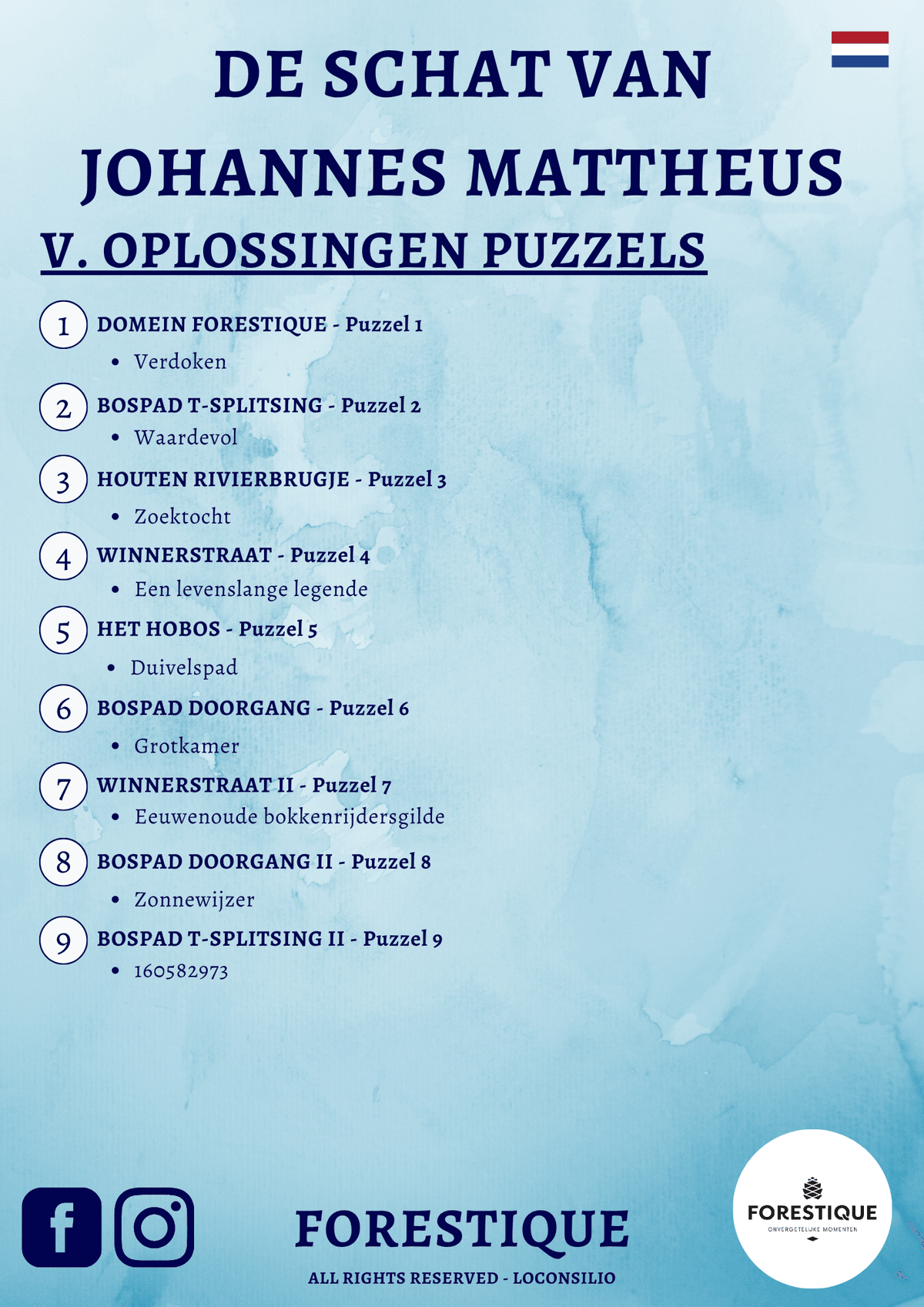 Twijfel je over de juistheid van je oplossing bij een welbepaalde puzzel, of ben je gewoon benieuwd hoe goed je team het gedaan heeft, kijk hieronder dan voor alle de oplossingen!